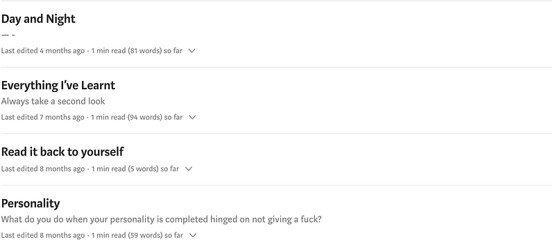 In a previous iteration of myself, I’d have been glad to share my internal dialogue and publicly document my process. This time though, I stuck with echoing the answers to myself because they seemed to never get fully resolved. l kept changing things as I refined my idea of who I wanted to be. There was no point hitting publish.