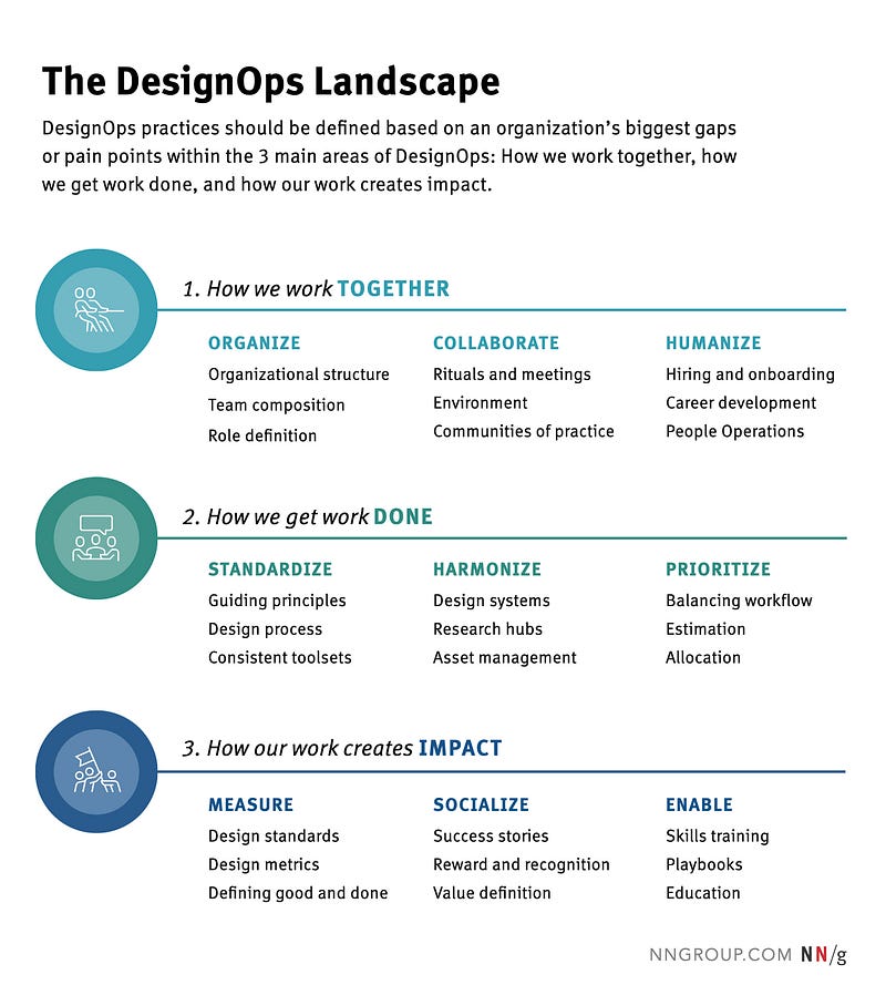 We used the NNGroup’s DesignOps 101 framework as a guide and built out these functions one by one. By bringing the entire team into the process, we also managed to develop operations as a shared responsibility.