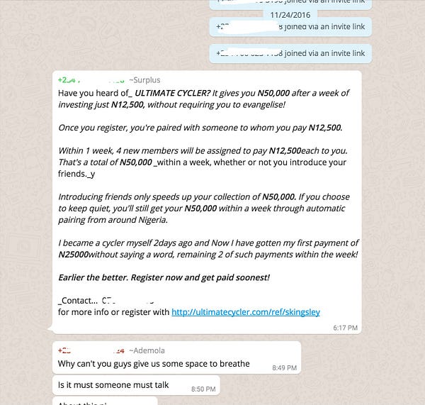 15,000 naira airtime and 50 Nigerians walk into a whatsapp group
