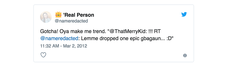 Looking back at my old tweets to see how I participated in the Gbagaun era was funny. The best thing I got out of it though, was that it allowed me articulate how I came to be this way on the internet. I’ll use Twitter as an example.