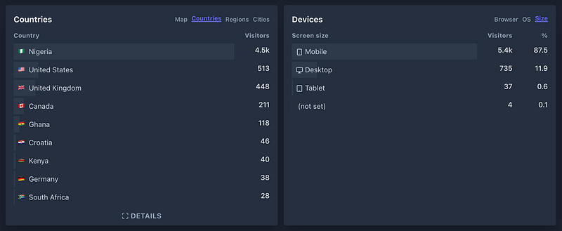 Over 6k people have visited so far. Twitter has been the biggest source of traffic, with majority of readers from Nigeria.